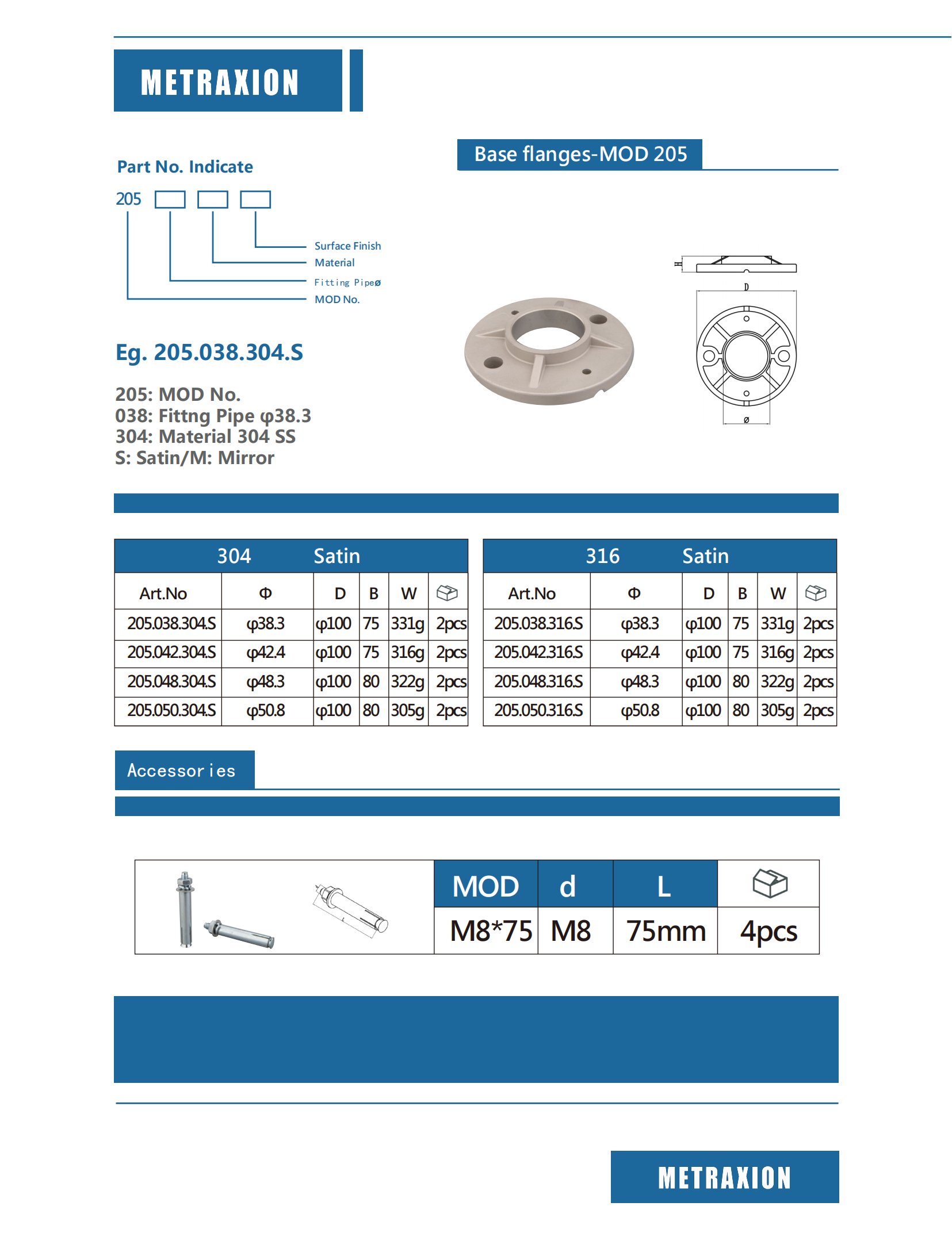 4. Un paquete de unidad incluye 2 bridas de base redonda y 4 tornillos M8*75.