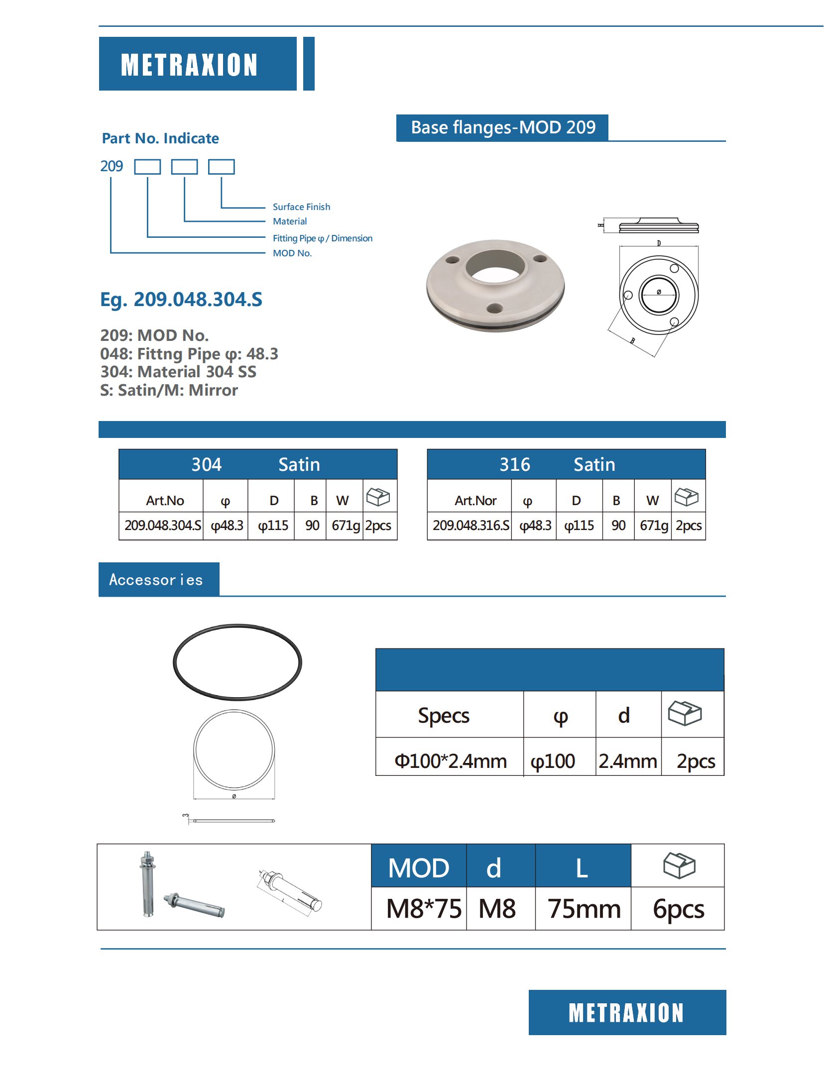 4. Un paquete de unidad incluye 2 bridas de base redonda, 2 tiras de sellado de goma y 6 tornillos M8*75.