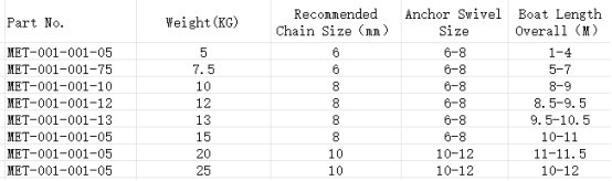 Consejo profesional: si suele fondear en corrientes fuertes, vientos fuertes o fondos marinos agitados, siempre es más seguro elegir una talla mayor para mayor seguridad.