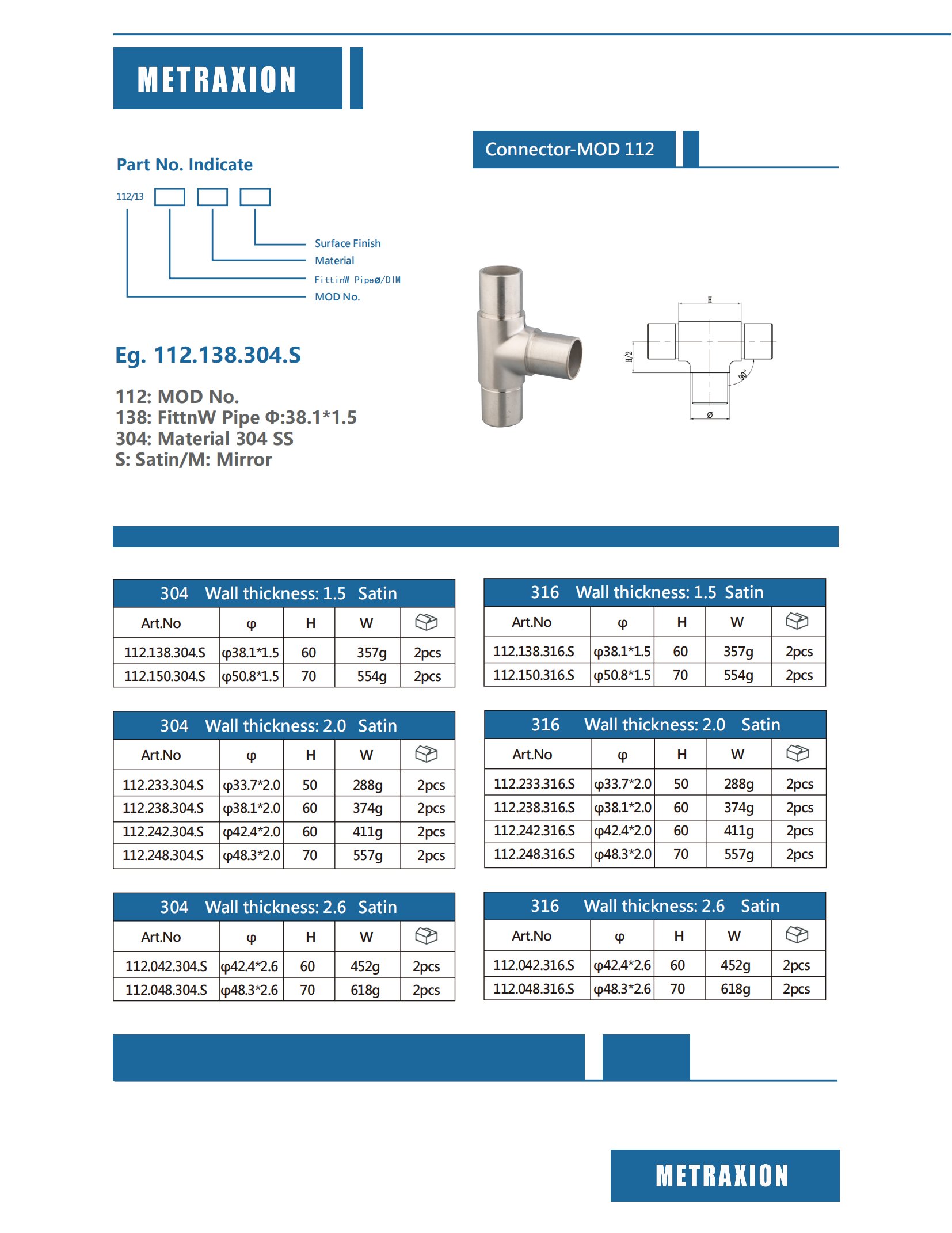 1. El conector para pasamanos está diseñado para conectar tres tubos y barandillas. Garantiza una conexión perfecta con mínimas holguras visibles. Asegura la conexión de forma más eficaz y mejora la integridad estructural del sistema de pasamanos. Está disponible con espesores de pared de 1,5/2,0/2,6 mm y diferentes especificaciones, lo que lo hace versátil y adaptable a diversos sistemas de pasamanos.