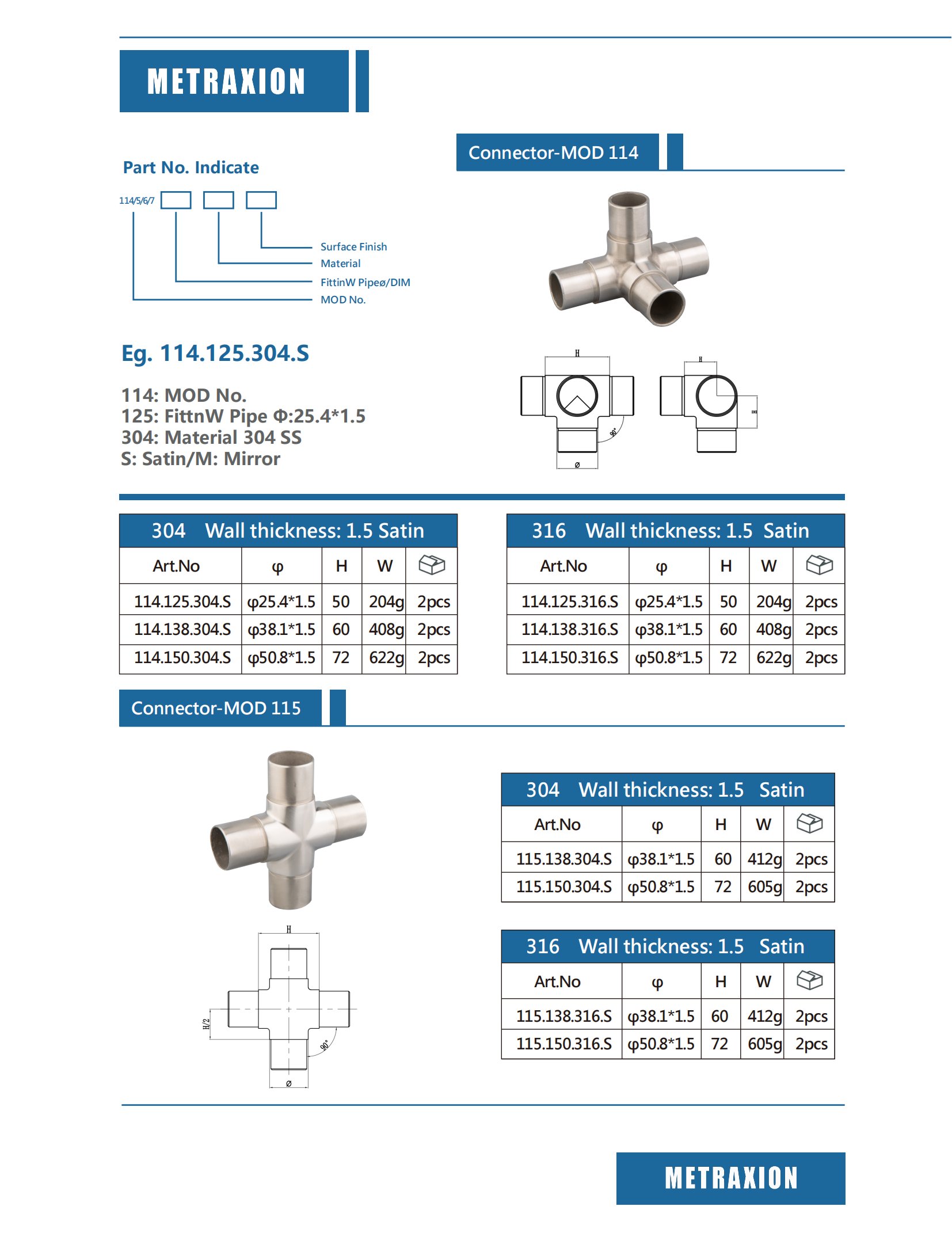1. El conector para pasamanos está especialmente diseñado para juntas de esquina de 90°, lo que proporciona una solución robusta y sin fisuras para la conexión de pasamanos, garantizando tanto la estética como la integridad estructural. Ofrece una solución robusta y fiable para conectar cuatro secciones de barandilla o tubería en una junta de esquina. Permite una fácil fijación y ajuste, garantizando un ajuste seguro a su sistema de barandilla. Está disponible con un espesor de pared de 1,5 mm.