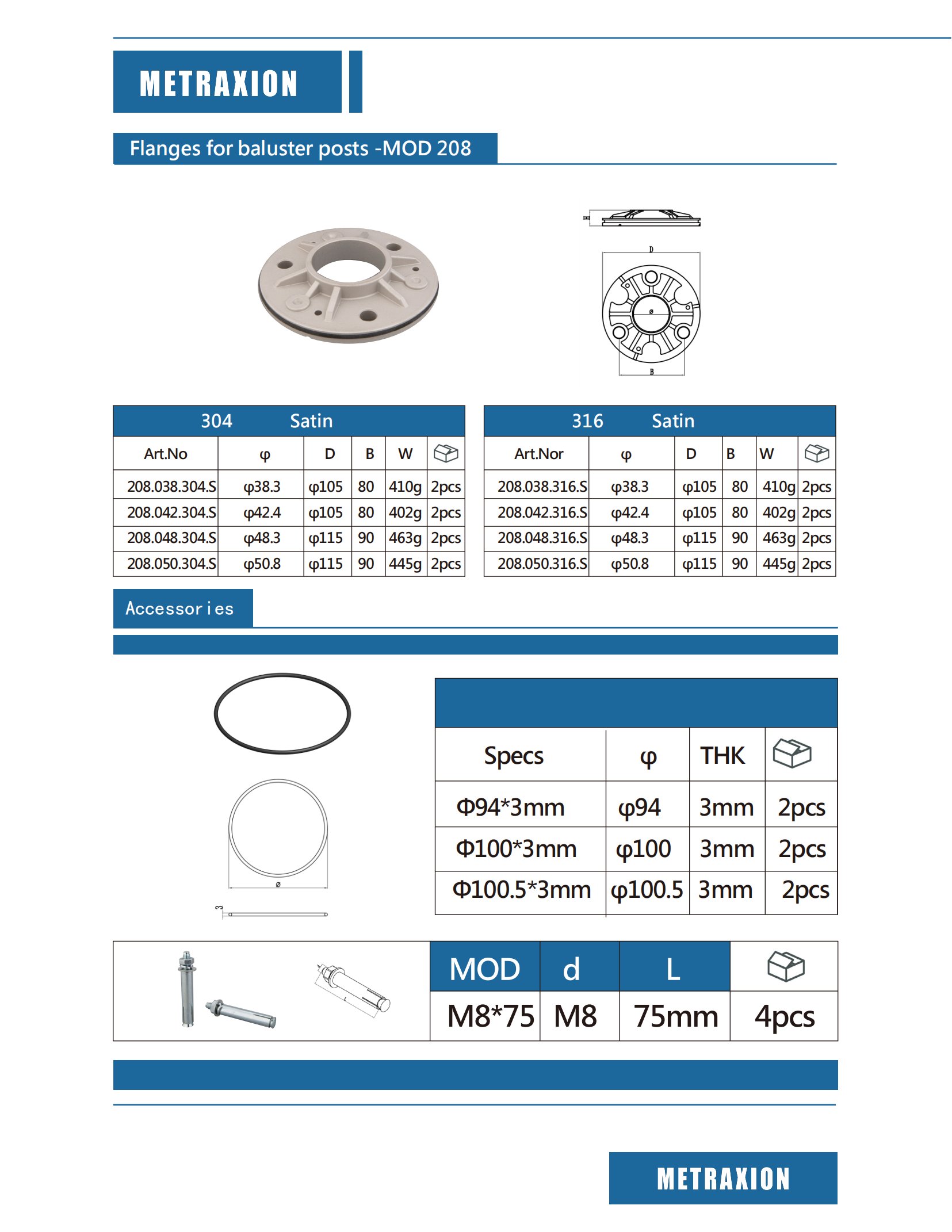 4. El paquete incluye 2 bridas redondas, 2 tiras de sellado de goma y 4 tornillos M8*75.