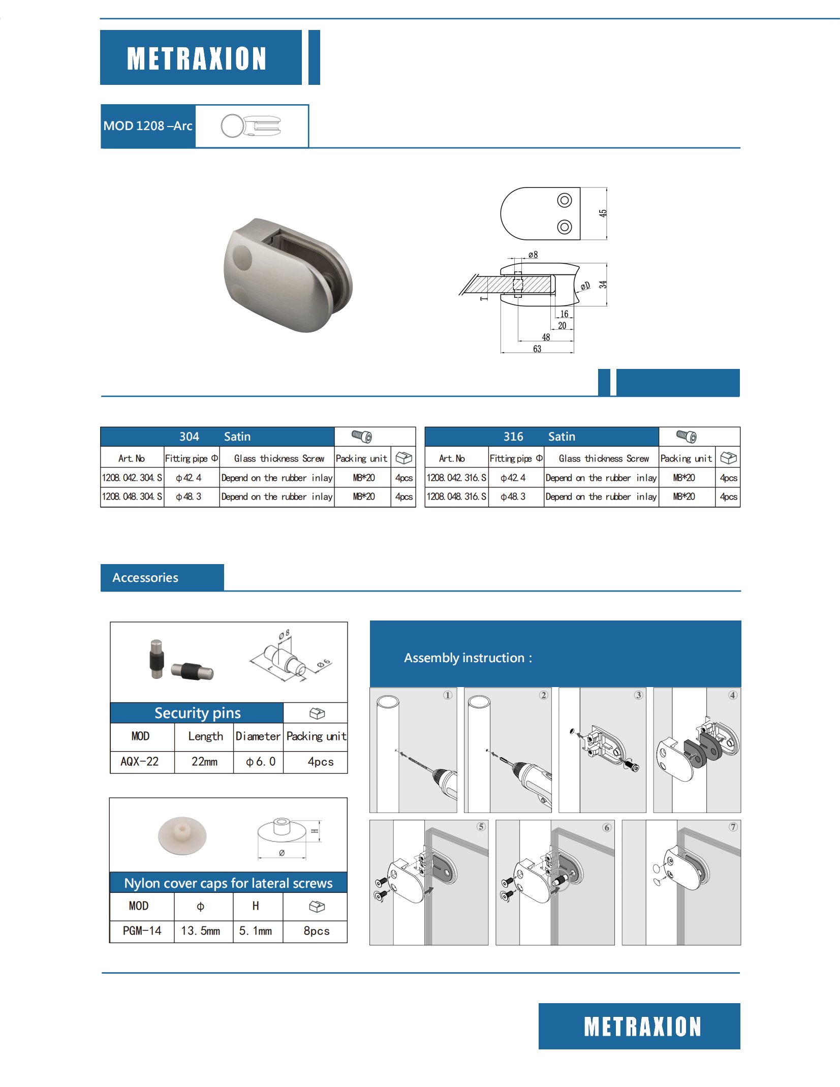 1. La abrazadera redonda para vidrio está diseñada para sujetar paneles de vidrio. Con una gran capacidad de carga, se fija firmemente, garantizando la estabilidad y seguridad de su barandilla de vidrio. Ofrece una solución robusta y confiable para el montaje de vidrio. Es fácil de instalar y desmontar. No requiere soldadura, solo pegado, taladrado y roscado. Las dimensiones de la abrazadera son 63 x 34 x 45 mm.