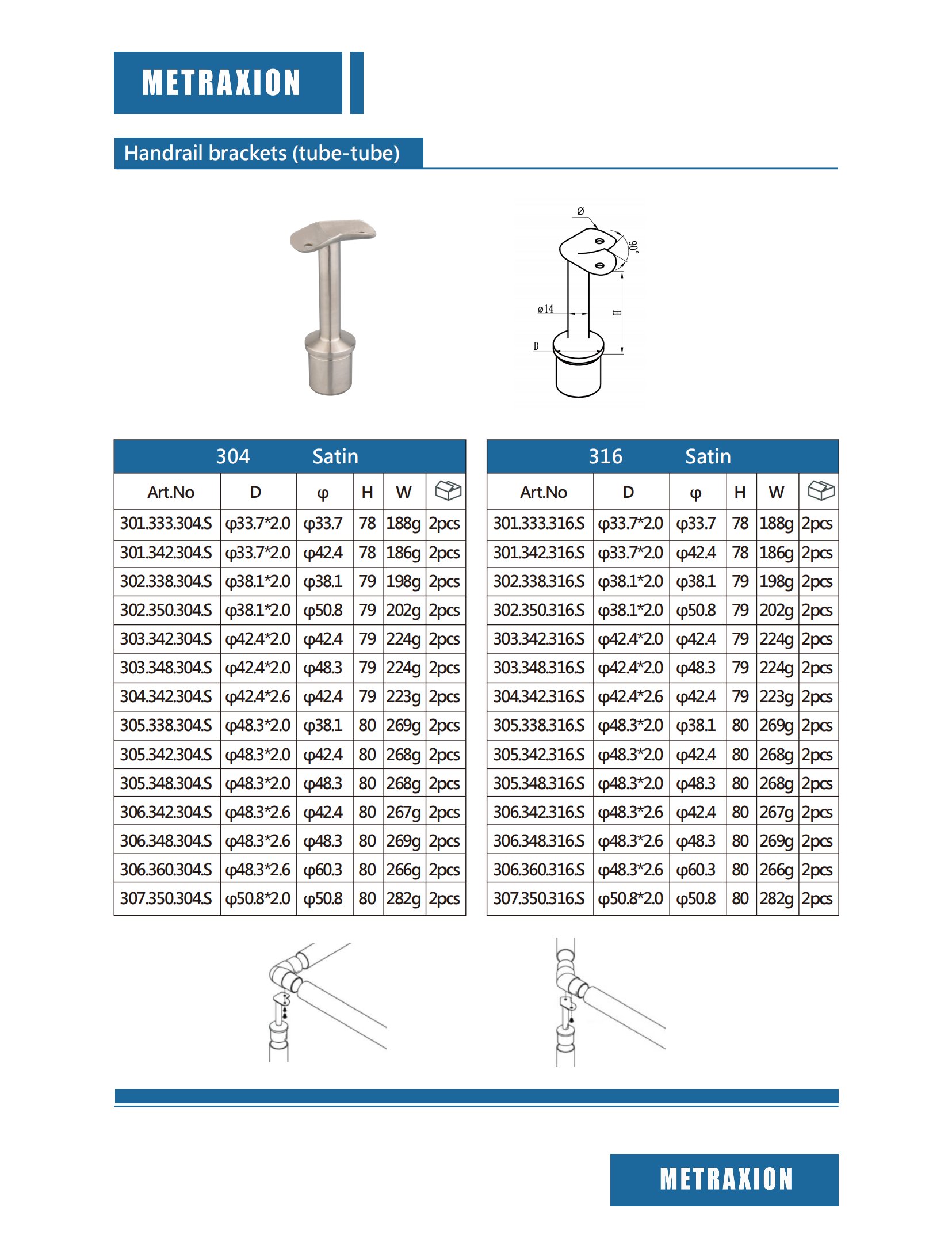 1. The handrail brackets are designed for durability and versatility, providing a robust support for handrail system. It connects the railing posts and handrails at the corner. It is designed to fit the round pipes and a wide range of handrail sizes and types, ensuring a secure and customized fit for your handrail system.